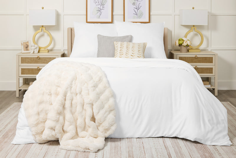 Hoewel inzetstukken geen dekbedovertrek vereisen, raden we je ten zeerste aan om er een te gebruiken. Een dekbedovertrek helpt het dekbed schoon te houden en is heel gemakkelijk te verwijderen en te wassen. Onze dekbedovertrek bevat ook bijpassende kussenslopen om je kussens te beschermen.